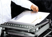 The Confectionery Guitar Cutter Pick Up Tray can be used with all types of guitar cutters. Chocolatiers and confectionery specialists use this pick-up pan to transport and rotate confectionery products to and from their guitar cutter, or other surfaces as desired.